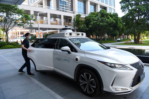 8月1日,在深圳前海,一名乘客體驗(yàn)乘坐小馬智行自動(dòng)駕駛汽車。新華社記者 梁旭 攝