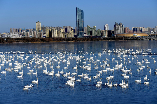 得益于生態(tài)的改善,當(dāng)?shù)靥禊Z數(shù)量從1988年首次發(fā)現(xiàn)的12只增加到去年的15300多只,使三門(mén)峽成為全球聞名的“天鵝之城”。