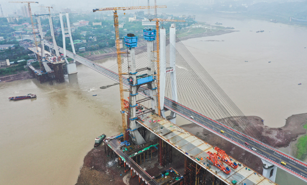 這是9月27日拍攝的重慶軌道交通18號(hào)線李家沱長(zhǎng)江復(fù)線橋施工作業(yè)現(xiàn)場(chǎng)(無(wú)人機(jī)照片)。