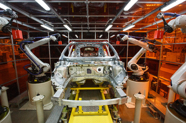 在余姚的寧波中意生態(tài)園領(lǐng)克汽車全球質(zhì)量中心,機器人完成自動沖壓、焊接、涂裝、裝配等生產(chǎn)工藝。資料照片