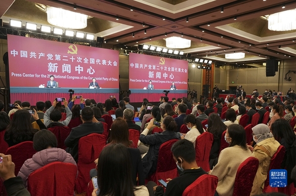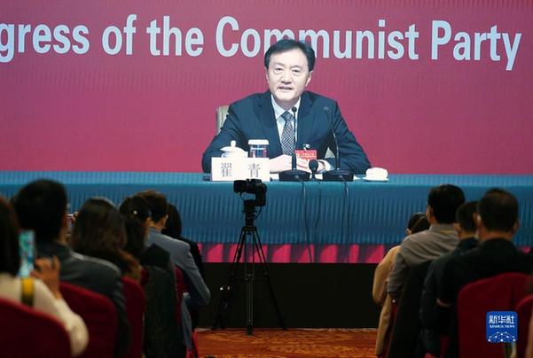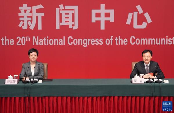 10月21日,中國共產(chǎn)黨第二十次全國代表大會新聞中心舉行記者招待會。生態(tài)環(huán)境部黨組成員、副部長翟青圍繞“建設(shè)人與自然和諧共生的美麗中國”主題與記者交流。新華社記者 賈浩成 攝