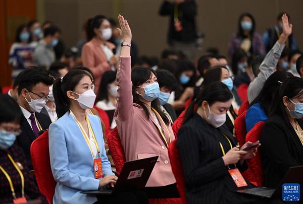 這是記者在分會場舉手提問。新華社記者 金良快 攝