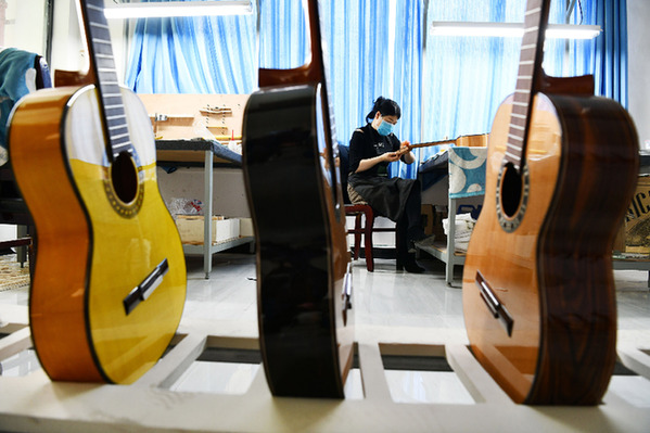 此后,正安開啟了產(chǎn)業(yè)集聚發(fā)展之路。吉他從單一生產(chǎn)制造到原材料、銷售、物流、培訓(xùn)、包裝等延伸,現(xiàn)已形成閉合產(chǎn)業(yè)鏈。