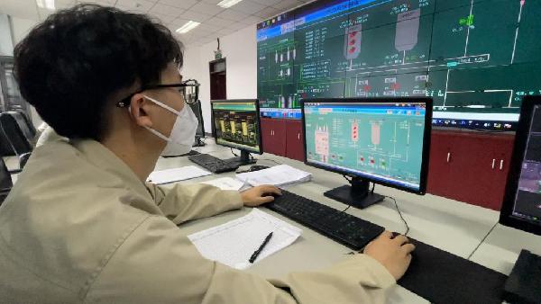 圖為工作人員在鍋爐控制室內(nèi)進(jìn)行實(shí)時(shí)監(jiān)測。(新華社記者田晨旭攝)