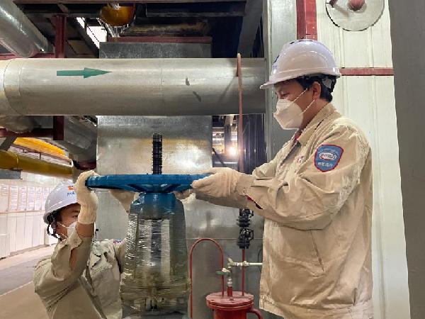 圖為工作人員在鍋爐房內(nèi)對鍋爐本體出水閥門進(jìn)行檢查。(新華社記者田晨旭攝)