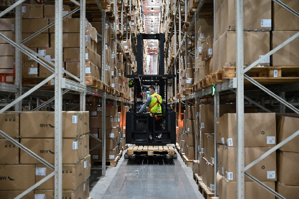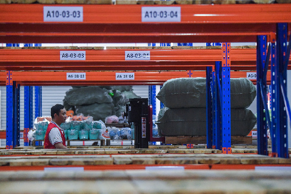 工人在晉江市安踏集團(tuán)一體化物流產(chǎn)業(yè)園忙碌。