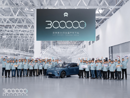 注:江淮蔚來(lái)先進(jìn)制造基地第30萬(wàn)臺(tái)汽車下線