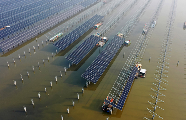 2023年1月5日拍攝的華電海晶光伏項(xiàng)目B標(biāo)段現(xiàn)場(chǎng)(無(wú)人機(jī)照片)。