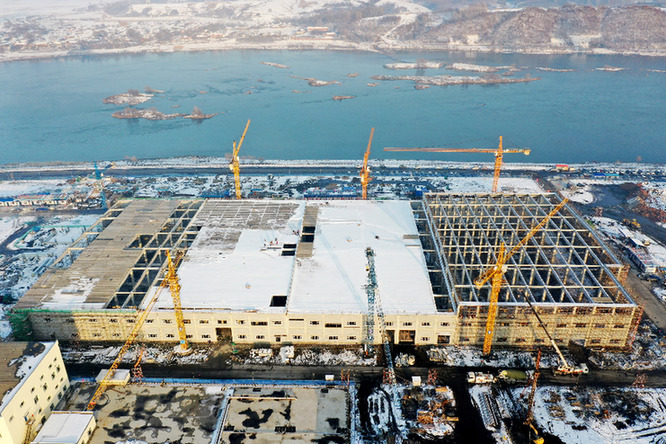 凜冽的寒風(fēng),擋不住敢闖的勁頭。40多臺汽車吊、120多臺曲臂車、60多臺焊機(jī)、800多名工人……氣溫-20℃,奧迪一汽新能源汽車項(xiàng)目現(xiàn)場,一派火熱的施工景象。作為德國奧迪品牌在華的首個(gè)純電動車型生產(chǎn)基地,這個(gè)計(jì)劃投資額超過300億元的項(xiàng)目僅用時(shí)5個(gè)月,便完成從破土動工到暖封閉,比原計(jì)劃足足提前一個(gè)月。