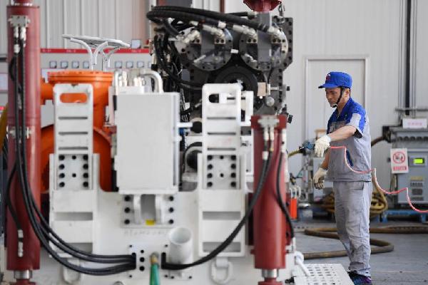 2022年6月17日,在陜西太合智能鉆探有限公司,工人準備對智能定向鉆機進行性能調(diào)試。新華社記者 李一博 攝