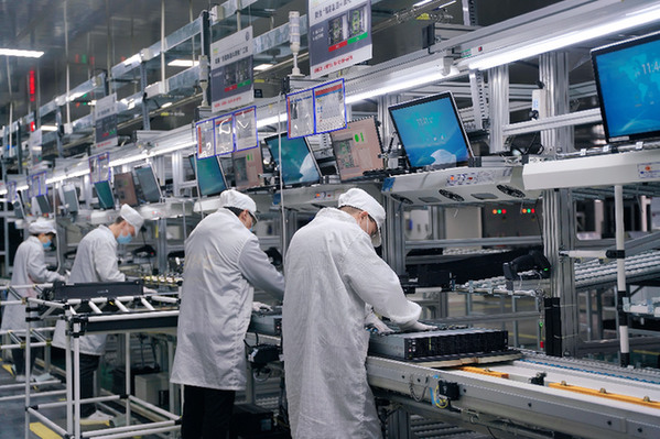 在位于許昌的黃河科技集團信息產(chǎn)業(yè)發(fā)展有限公司,生產(chǎn)車間內,33歲的女工溫艷麗正在對該公司生產(chǎn)的服務器電路板進行內存條組裝。
