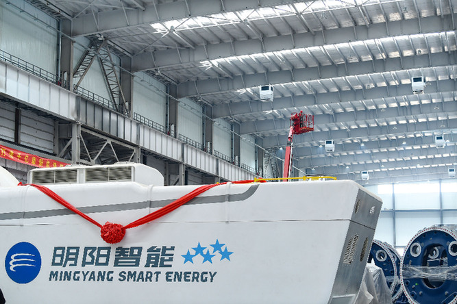 “去年3月開工建設(shè),誰(shuí)能想到不到一年的時(shí)間,就能建成這么大規(guī)模的項(xiàng)目。”該項(xiàng)目負(fù)責(zé)人劉瑋介紹,從一片荒山到大型廠房排布,這里很快將建成大型陸上風(fēng)電整機(jī)、齒輪箱、發(fā)電機(jī)、碳?;旌铣L(zhǎng)葉片等核心部件的智能制造基地,具備年產(chǎn)1000臺(tái)套以上陸上超大型風(fēng)電整機(jī)及核心部件的生產(chǎn)能力。