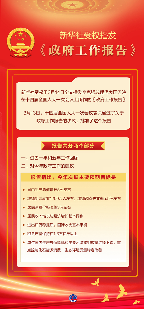 報告共分兩個部分:一、過去一年和五年工作回顧;二、對今年政府工作的建議。