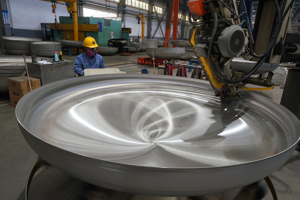 工人在位于興仁鎮(zhèn)的南通四方罐式儲(chǔ)運(yùn)設(shè)備制造有限公司標(biāo)罐車間忙碌。