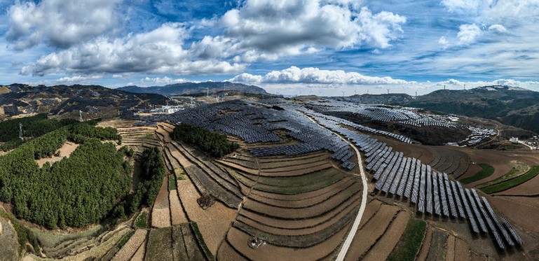 這是3月20日拍攝的云南省巧家縣海壩光伏電站(無人機照片)。金沙江下游風光水儲一體化國家級示范基地位于金沙江下游干熱河谷地段,主要依靠當?shù)厮婇_發(fā)項目統(tǒng)籌建設風能、太陽能電站。目前,云南省巧家縣海壩、小羊窩等光伏項目已投產(chǎn)發(fā)電。