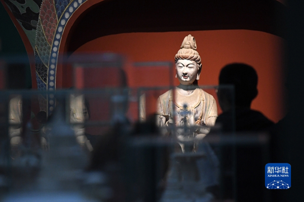 4月5日,觀眾在敦煌研究院蘭州分院敦煌藝術(shù)館參觀。新華社記者陳斌 攝
