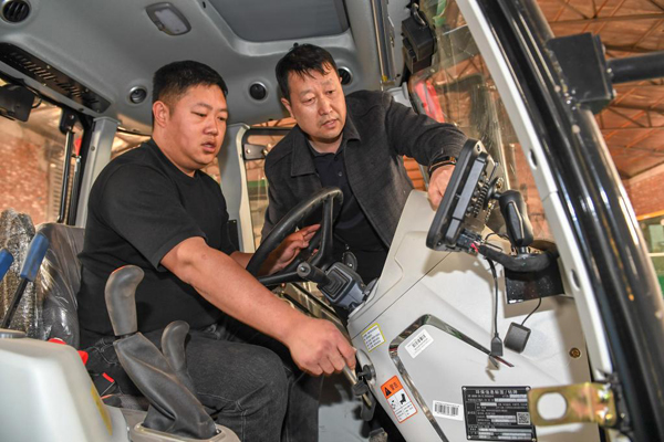 3月23日,在吉林省四平市梨樹(shù)縣白山鄉(xiāng)岫巖村,梨樹(shù)縣農(nóng)機(jī)推廣總站站長(zhǎng)張志剛(右)幫助農(nóng)民調(diào)試農(nóng)機(jī)。新華社記者 張楠 攝