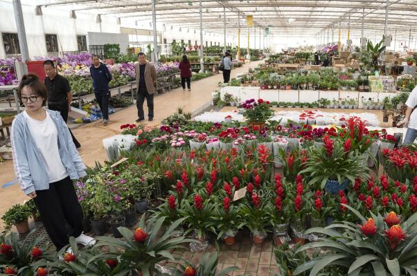 4月17日,顧客在河北省廊坊市永清縣恒美國際花都選購鮮花。近年來,河北廊坊永清縣積極承接北京非首都功能疏解,通過產(chǎn)業(yè)引導(dǎo)、政策扶持等舉措建成以花卉為核心的全產(chǎn)業(yè)鏈田園綜合體——恒美國際花都。該基地展廳面積達(dá)2.5萬平方米,有特色花卉近千個品種。在花卉交易的帶動下,周邊村街已形成4000余畝的花卉種植基地,逐步打造“公司+村街+合作社+農(nóng)戶”的發(fā)展模式。新華社記者 才揚(yáng) 攝