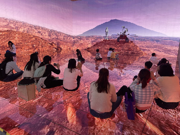 2023年“中國航天日”系列展覽上,參展者通過體驗沉浸式航天元宇宙感受“登陸”火星。