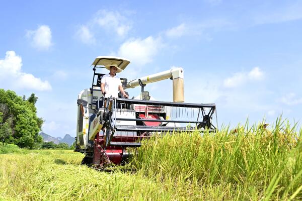 柳州市柳江區(qū)是廣西重要的糧食生產(chǎn)基地之一。連日來,柳江區(qū)種植的12.2萬畝早稻陸續(xù)進入成熟收獲期,當?shù)剞r(nóng)機部門組織收割機保障早稻收割的同時,還通過開展水稻機收減損技能比武等方式,引導廣大農(nóng)民和農(nóng)機手在生產(chǎn)實踐中精操作、比技能,保障夏糧豐收。