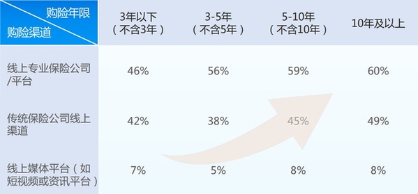 不同購險(xiǎn)年限線上購險(xiǎn)渠道分布(多選) 數(shù)據(jù)來源:《2022年中國(guó)互聯(lián)網(wǎng)保險(xiǎn)消費(fèi)者洞察報(bào)告》 潘悅 制圖