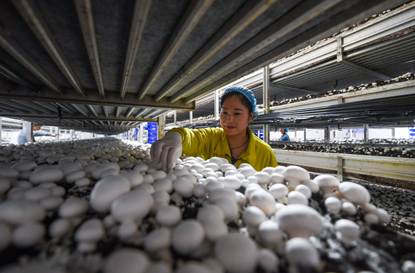 近年來,江蘇省連云港市灌南縣積極發(fā)展食用菌產(chǎn)業(yè),加快推進(jìn)食用菌全產(chǎn)業(yè)鏈開發(fā),把食用菌產(chǎn)業(yè)作為實現(xiàn)鄉(xiāng)村振興和現(xiàn)代農(nóng)業(yè)的先導(dǎo)產(chǎn)業(yè)、示范產(chǎn)業(yè),不斷推進(jìn)農(nóng)業(yè)增效、農(nóng)民增收。圖為8月24日,工作人員在當(dāng)?shù)毓S檢查雙孢菇生長情況。