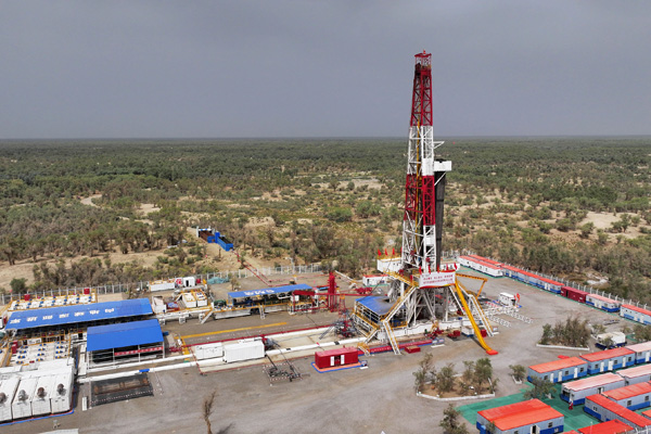 位于新疆塔里木盆地塔克拉瑪干沙漠的中國(guó)石化“深地工程”——順北油氣田平均埋藏深度超過7300米,是世界陸上最深的商業(yè)開發(fā)油氣田之一。順北油氣田目前已鉆成垂直深度超過8000米的井50口,實(shí)現(xiàn)了26口“千噸井”(單井日產(chǎn)1000噸的油氣井)的重大突破。圖為8月21日拍攝的中國(guó)石化塔里木盆地“深地工程”躍進(jìn)3-3XC油氣井。該井設(shè)計(jì)井深9472米,截至8月28日,鉆探深度已達(dá)8471米(無人機(jī)照片)。