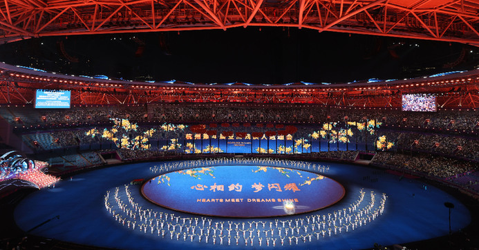10月22日拍攝的亞殘運(yùn)會(huì)開(kāi)幕式現(xiàn)場(chǎng)。當(dāng)日,杭州第4屆亞洲殘疾人運(yùn)動(dòng)會(huì)開(kāi)幕式在杭州奧體中心體育場(chǎng)舉行。