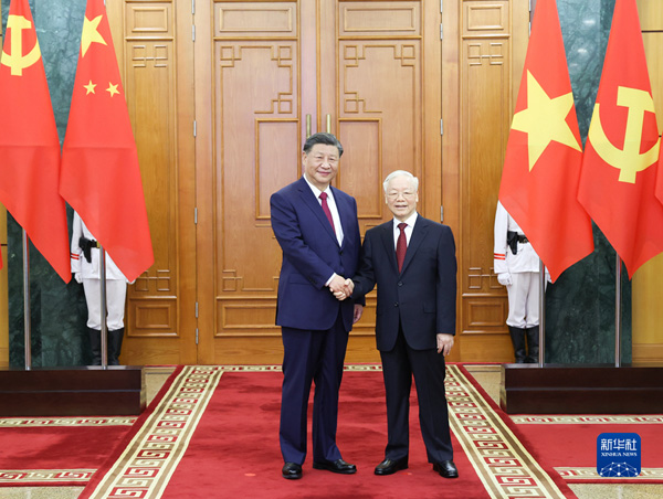 習(xí)近平強(qiáng)調(diào),中越兩國在各自爭(zhēng)取國家獨(dú)立和民族解放斗爭(zhēng)中相互支持,在彼此改革開放和革新事業(yè)中互學(xué)互鑒,“越中情誼深、同志加兄弟”是中越關(guān)系最生動(dòng)寫照。中方始終從戰(zhàn)略高度和長(zhǎng)遠(yuǎn)角度看待中越關(guān)系。當(dāng)前,世界之變、時(shí)代之變、歷史之變正以前所未有的方式展開。中越兩黨作為世界前兩大執(zhí)政的共產(chǎn)黨,都堅(jiān)持和發(fā)展馬克思主義,都堅(jiān)定不移走社會(huì)主義道路,都在領(lǐng)導(dǎo)各自國家進(jìn)行社會(huì)主義建設(shè),更應(yīng)該從壯大世界社會(huì)主義力量和確保各自社會(huì)主義建設(shè)事業(yè)行穩(wěn)致遠(yuǎn)的高度,把握中越關(guān)系的特殊戰(zhàn)略意義,扎實(shí)推進(jìn)中越命運(yùn)共同體建設(shè)。相信在雙方共同努力下,中越關(guān)系將進(jìn)入政治互信更高、安全合作更實(shí)、互利合作更深、民意基礎(chǔ)更牢、多邊協(xié)調(diào)配合更緊、分歧管控解決更好的新階段,中越兩國社會(huì)主義建設(shè)事業(yè)將不斷取得新成就,并為地區(qū)乃至世界穩(wěn)定、發(fā)展、繁榮作出新貢獻(xiàn)。