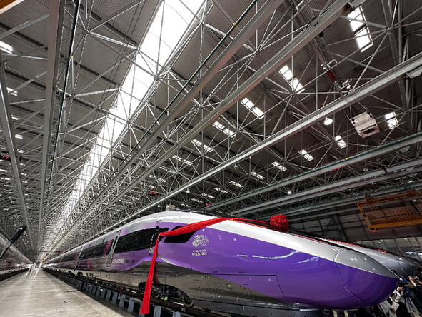 7月21日拍攝的復(fù)興號亞運智能動車組外觀。當(dāng)日,復(fù)興號亞運智能動車組在位于吉林長春的中車長春軌道客車股份有限公司正式下線。 記者 馬曉成 攝