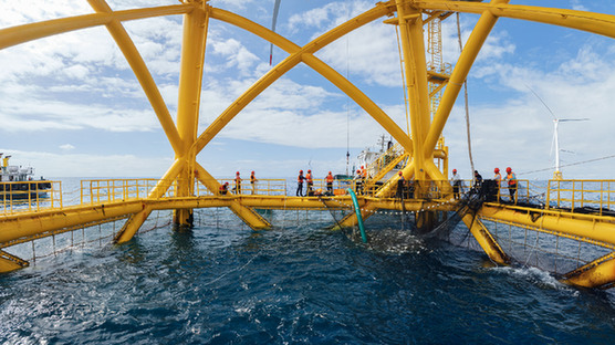 新業(yè)態(tài)的融合,為耕海牧漁帶來更多空間。11月10日,在離岸近百公里的廣東陽江遠(yuǎn)海海域上,隨著一聲“收魚”令下,由我國自主研發(fā)的風(fēng)漁一體化智能裝備“明漁一號”正式迎來首批漁獲。宣告了風(fēng)機(jī)導(dǎo)管架基礎(chǔ)與養(yǎng)殖網(wǎng)箱融合發(fā)展模式試驗(yàn)取得成功,為“海上風(fēng)電與海洋牧場”融合開發(fā)探索了新路徑。