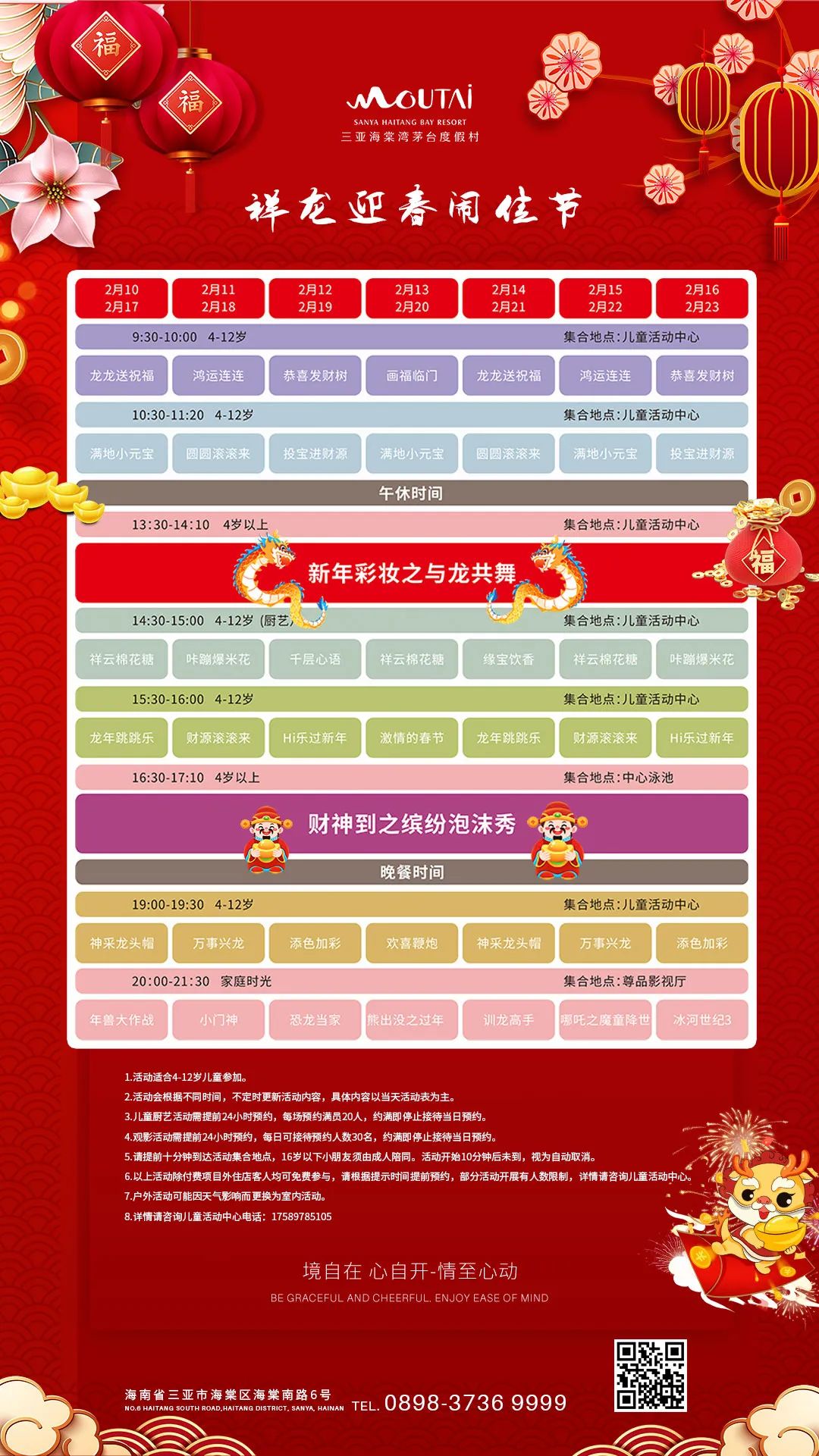 ????據(jù)悉,春節(jié)期間,茅臺度假村還將全天在酒店內(nèi)的兒童活動中心、中心泳池、尊品影視廳固定開展“祥龍迎春鬧佳節(jié)”主題活動,活動類別豐富、花樣百出,既有傳統(tǒng)文化體驗,更有親子歡樂互動,活動時間將持續(xù)至大年十五元宵節(jié)。