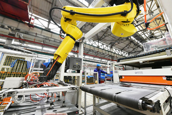 圖為在哈電集團(tuán)哈爾濱電機(jī)廠有限責(zé)任公司生產(chǎn)車間,工作人員在操控自動涂漆線機(jī)械手智能化改造項(xiàng)目的智能設(shè)備。新華社記者 王建威 攝