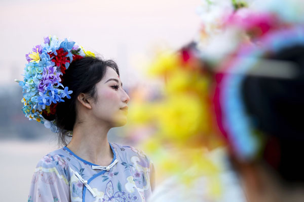 “源于泉州蟳埔村的簪花圍近來最受大家追捧。有人說骨笄頭飾是古代‘骨針安發(fā)’遺風(fēng),也有人說蟳埔村民是阿拉伯人后裔,簪花圍源于中亞婦女戴花的習(xí)俗?!甭门牡曦?fù)責(zé)人龍路存是蘇文竹的老鄉(xiāng),在泉州考察一個(gè)禮拜后,決定在福州落腳。他說,市民、游客頭戴簪花圍,身穿民族服飾,既感受傳統(tǒng)文化的魅力,也表達(dá)對幸福生活的熱愛。