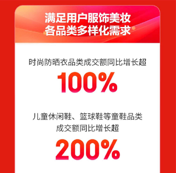 值得一提的是,京東618開門紅契合熱門消費(fèi)節(jié)點(diǎn),也帶動(dòng)相關(guān)品類迎來了銷量小高峰。隨著“六一”國(guó)際兒童節(jié)來臨,童裝童鞋品類順勢(shì)爆發(fā),耐克(NIKE)兒童成交額同比增長(zhǎng)超5倍。兒童休閑鞋、籃球鞋等童鞋品類成交額同比增長(zhǎng)超200%;而滿足消費(fèi)者夏日穿衣怕熱怕曬需求,時(shí)尚防曬衣品類成交額同比增長(zhǎng)100%,洞洞鞋成交額同比增長(zhǎng)超100%。又便宜又好的反季品類也受到消費(fèi)者追捧,京東618開門紅4小時(shí),皮衣、毛呢等品類成交額同比增長(zhǎng)超過5倍。