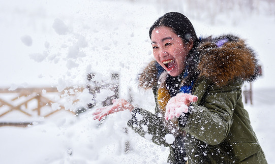 長(zhǎng)白山景區(qū)內(nèi)玩雪的游客。 記者 王昊飛 攝