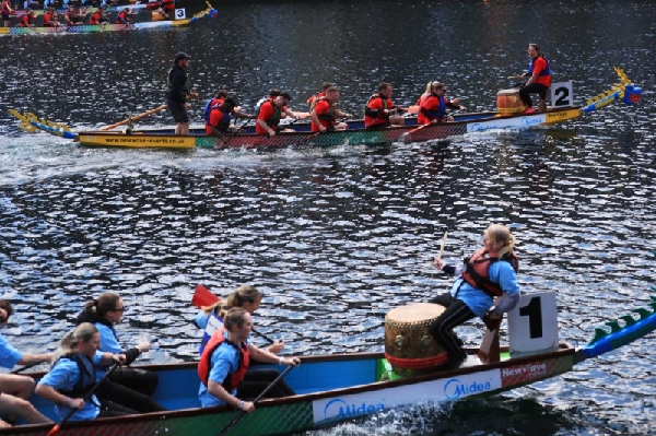 在英國,第十屆全英中華端午龍舟會8日和9日在大曼徹斯特地區(qū)索爾福德市勞瑞碼頭水上運(yùn)動中心舉行。今年比賽的最大亮點(diǎn)是曼城和曼聯(lián)兩只足球俱樂部把他們著名的曼徹斯特“德比”從足球場帶到了龍舟賽道上。