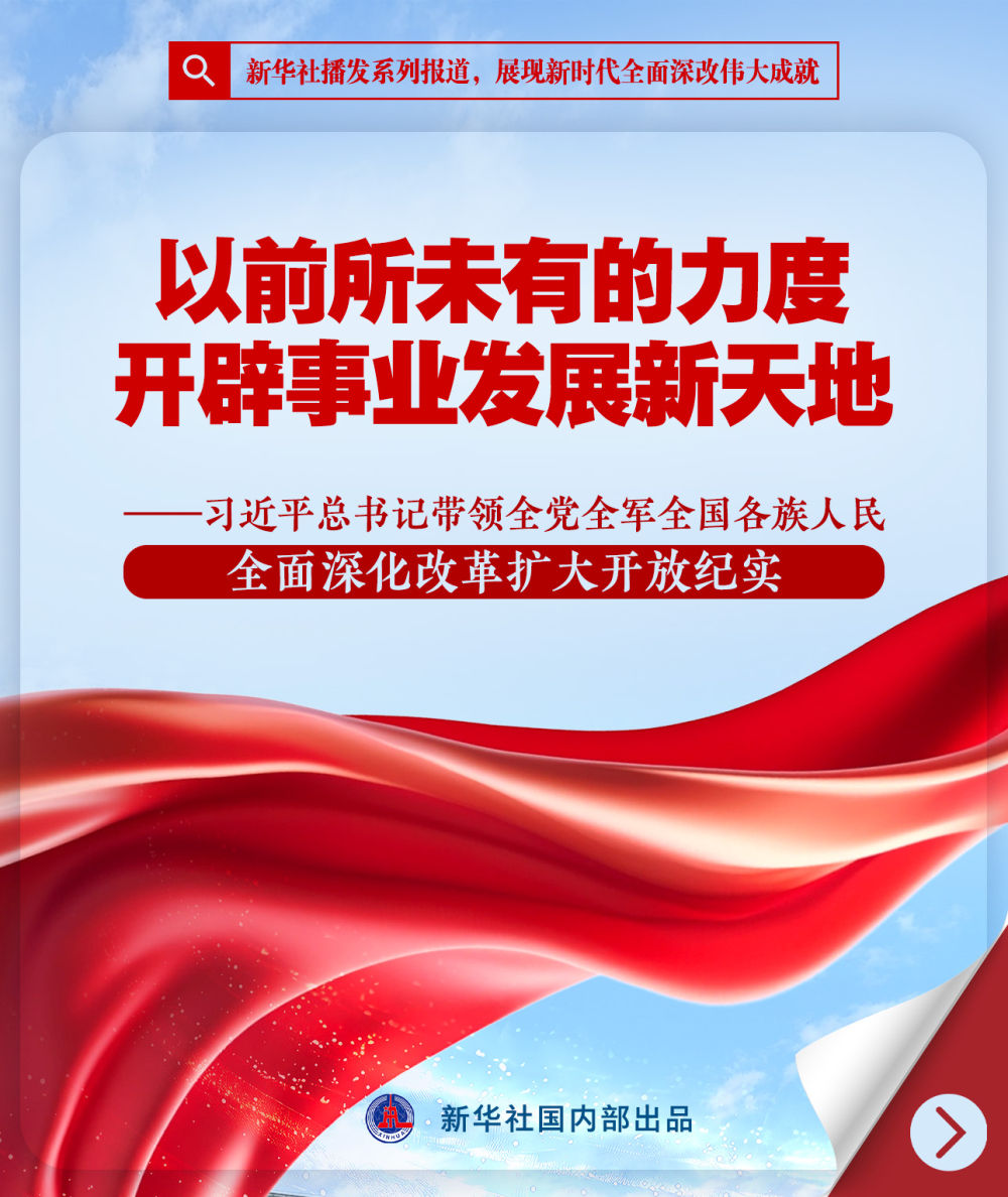 ??6月25日至7月2日,新華社推出系列報(bào)道,全景記錄習(xí)近平總書記帶領(lǐng)全黨全軍全國各族人民全面深化改革擴(kuò)大開放的偉大歷程,深刻闡釋黨的十八屆三中全會以來我國全面深化改革取得的歷史性成就,生動講述全面深化改革動人故事。