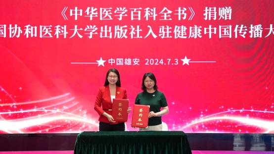 捐贈儀式之后,中國協(xié)和醫(yī)科大學(xué)出版社與雄安新區(qū)未來健康傳播中心簽署戰(zhàn)略合作協(xié)議。作為正式簽約入駐健康中國傳播大廈的第一家“中字頭”單位,中國協(xié)和醫(yī)科大學(xué)出版社將進(jìn)一步推進(jìn)院士進(jìn)駐大廈健康傳播院士基地,將雙方在各自領(lǐng)域的領(lǐng)先優(yōu)勢和共同使命結(jié)合在一起形成“權(quán)威+傳播”合力,聯(lián)合生產(chǎn)和輸出更具權(quán)威性的健康知識和健康節(jié)目,進(jìn)一步推動形成融媒體環(huán)境下的出版新業(yè)態(tài)。