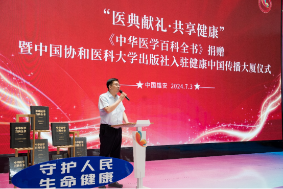 《中華醫(yī)學(xué)百科全書》捐贈暨中國協(xié)和醫(yī)科大學(xué)出版社入駐健康中國傳播大廈儀式日前在雄安新區(qū)健康中國傳播大廈舉行。中國工程院院士劉德培及中國協(xié)和醫(yī)科大學(xué)出版社、雄安新區(qū)宣傳網(wǎng)信局、雄安新區(qū)公共服務(wù)局、中國雄安集團(tuán)、雄安新區(qū)未來健康傳播中心的相關(guān)負(fù)責(zé)人出席并共同見證。