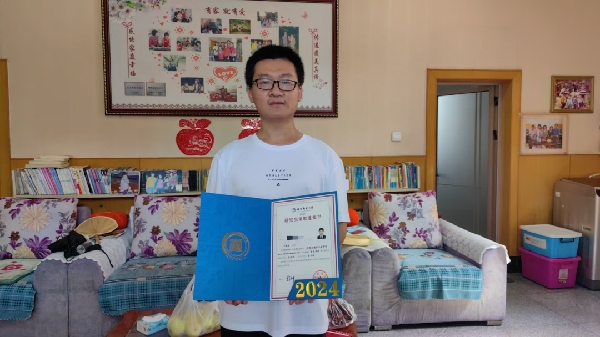 “恭喜你!這是錄取通知書。”上午9點(diǎn)多,在兒童村大門口,于偉安和媽媽李桂英接到了郵政EMS快遞員送來的研究生錄取通知書。打開大紅信封,看著藍(lán)色的精美通知書,于偉安和媽媽高興地?fù)肀饋?。在今年的研究生考試中,于偉安?06分的好成績(jī)考上北京郵電大學(xué)的王牌專業(yè)——通信工程專業(yè),成為兒童村的又一驕傲。