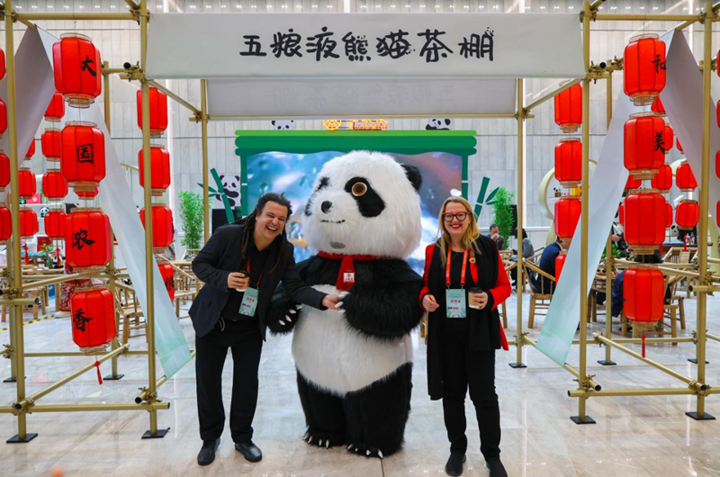 熊貓茶棚和熊貓人偶吸引參會(huì)嘉賓體驗(yàn)打卡。