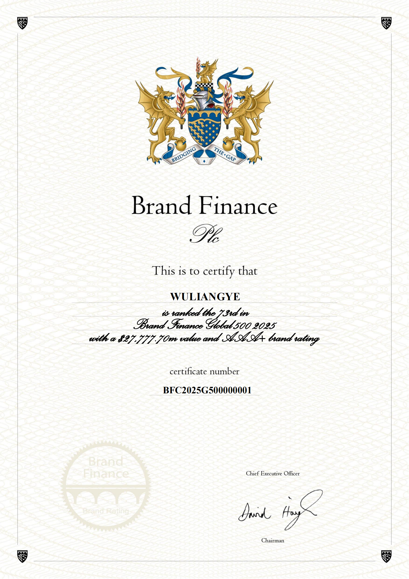 Brand Finance 2025年全球品牌價(jià)值500強(qiáng)榜單報(bào)告顯示,五糧液品牌強(qiáng)度評(píng)級(jí)繼續(xù)保持全球最高等級(jí)——AAA+級(jí),品牌價(jià)值達(dá)277.78億美元,同比增長(zhǎng)7.27%,排名上升2位至第73名。
