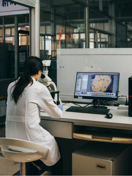 茅臺(tái)員工通過儀器進(jìn)行菌群研究