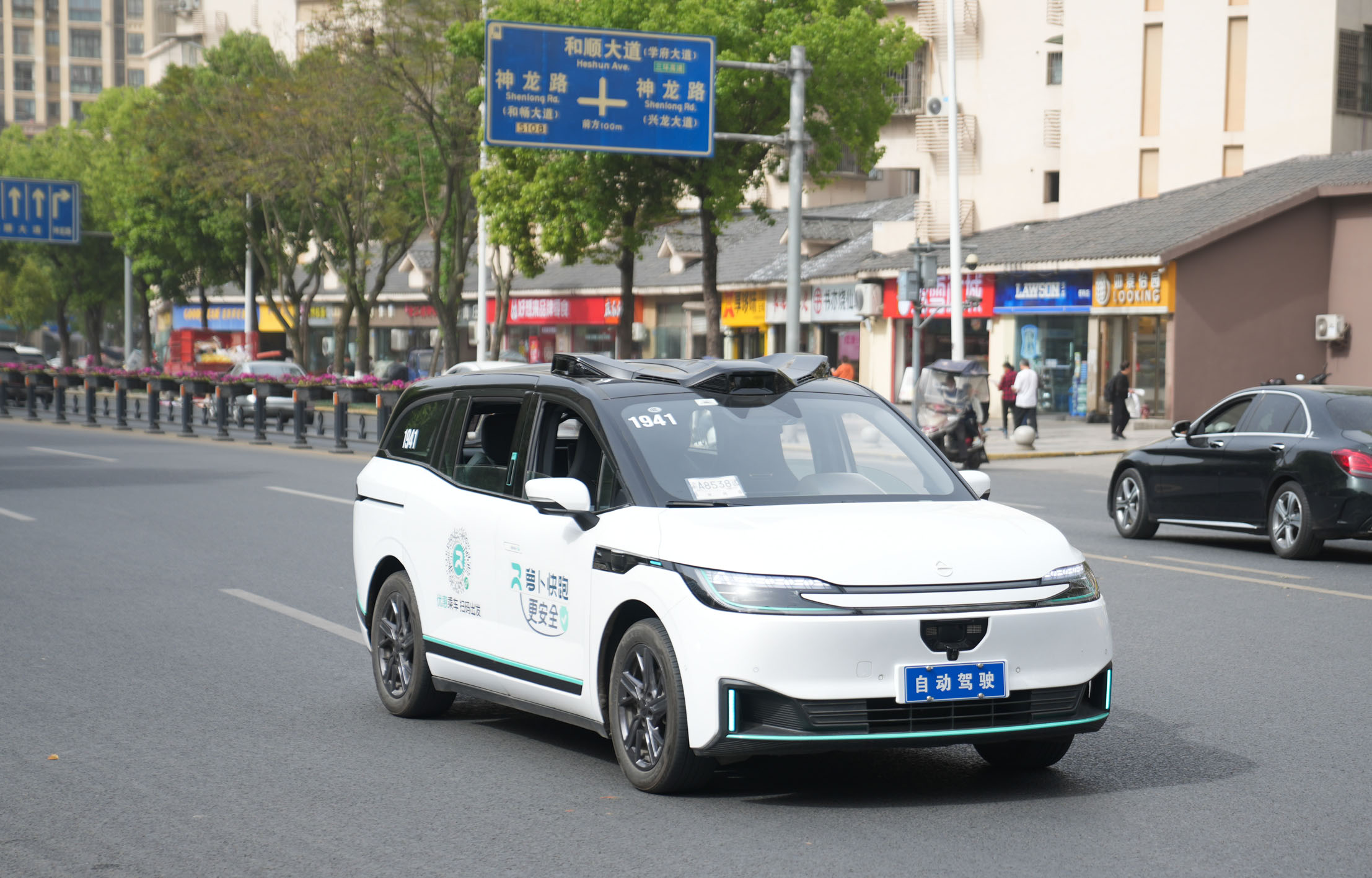 一輛自動(dòng)駕駛網(wǎng)約車行駛在重慶永川城區(qū)。 新華社發(fā)(陳安鑫 攝)