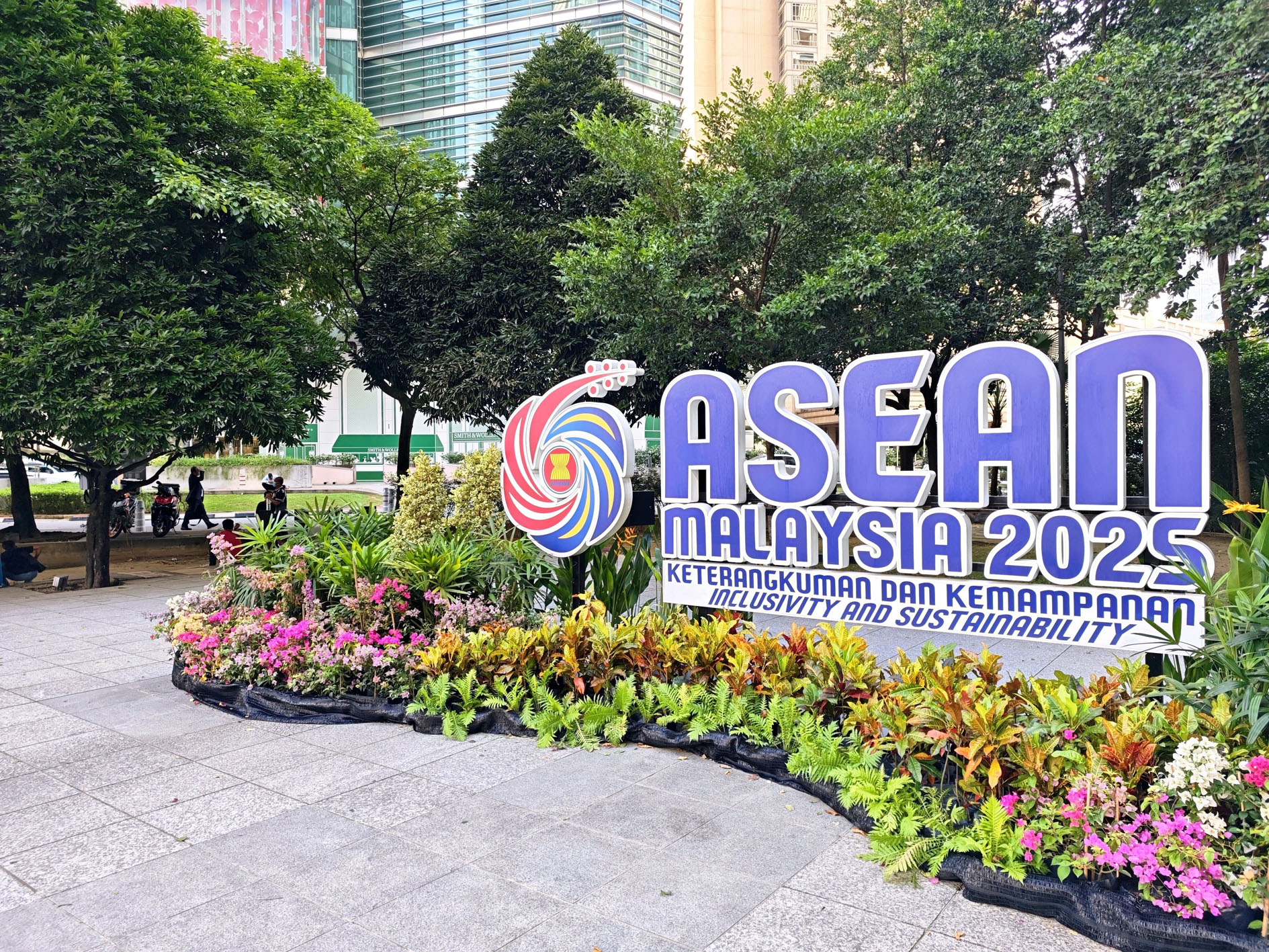 圖為在馬來西亞首都吉隆坡街頭拍攝的東盟峰會標(biāo)識。第47屆東盟峰會及系列會議于10月26日至28日舉行,東盟各國領(lǐng)導(dǎo)人將重點討論東盟共同體建設(shè)及對外關(guān)系等議題。
