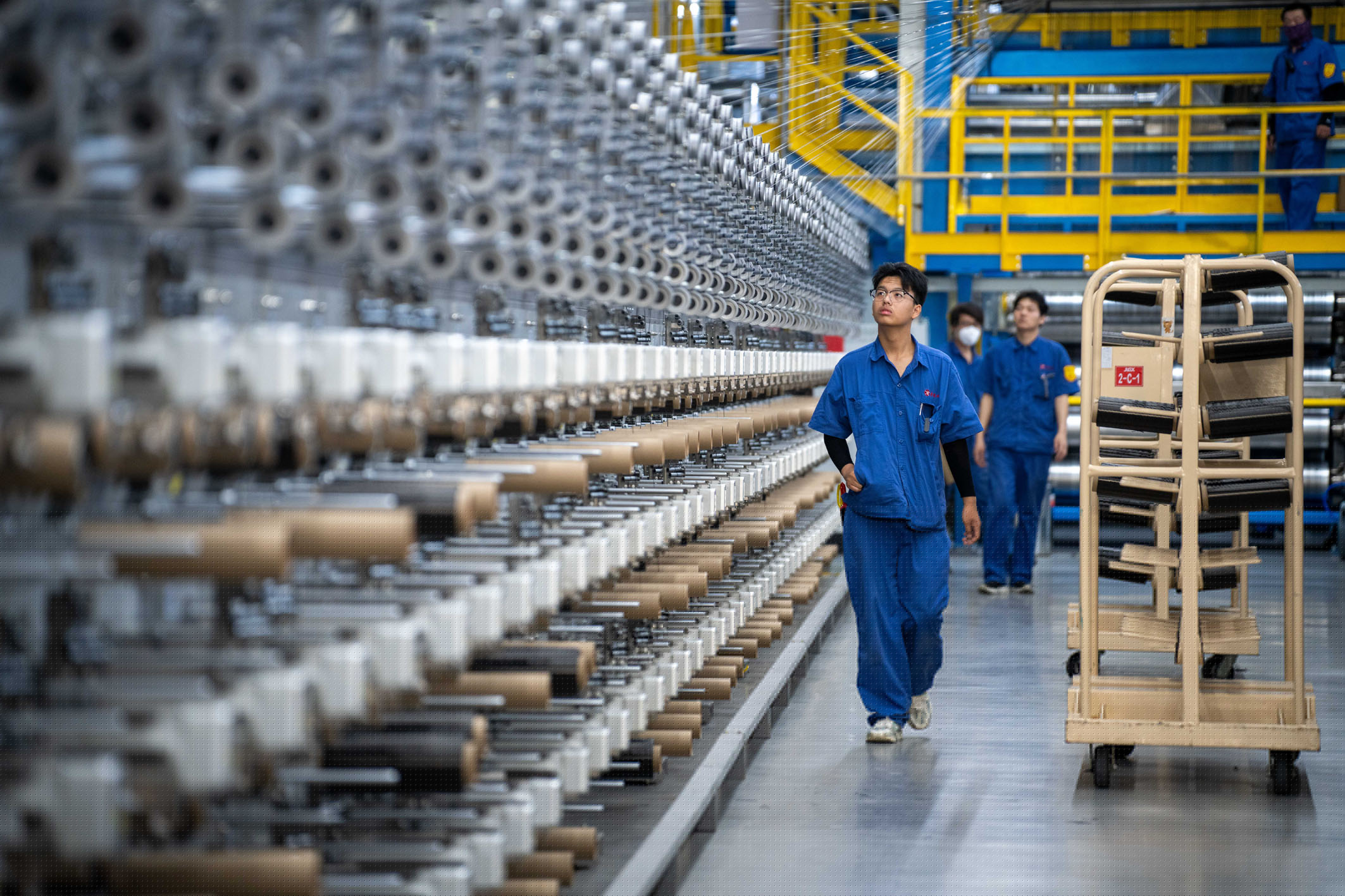 在吉林化纖集團碳纖維生產(chǎn)車間,工人監(jiān)控自動化生產(chǎn)線運行情況。新華社記者 邵澤東 攝