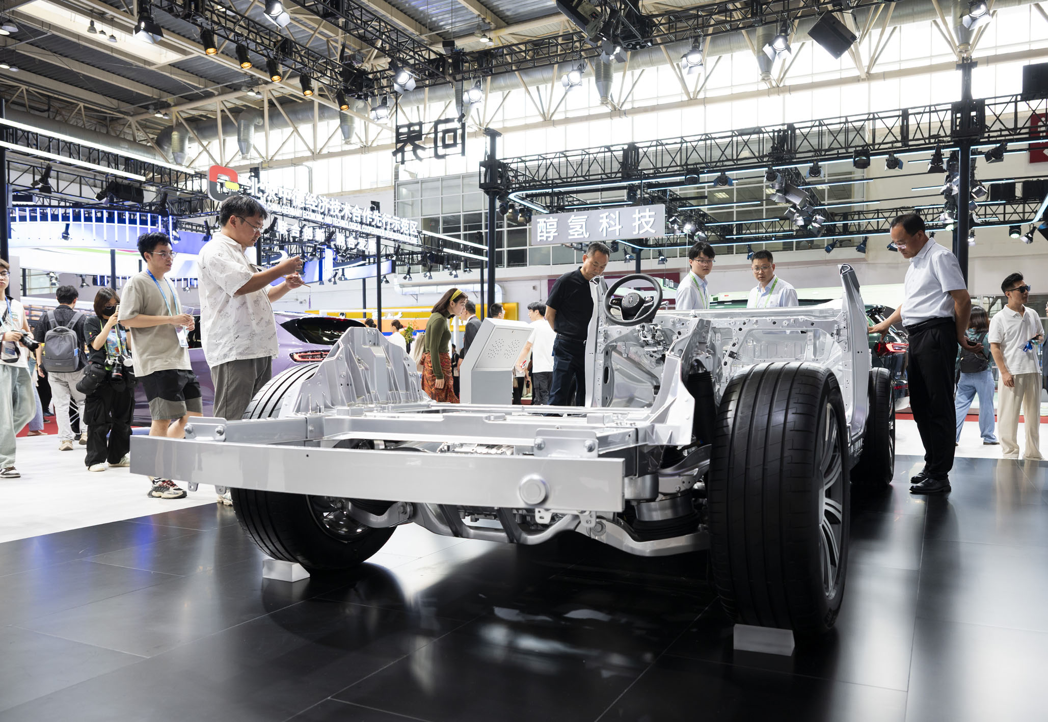 在今年7月舉辦的第三屆中國(guó)國(guó)際供應(yīng)鏈促進(jìn)博覽會(huì)設(shè)置的智能汽車鏈展區(qū),30余家中外企業(yè)和機(jī)構(gòu)集中展示產(chǎn)業(yè)鏈上中下游的關(guān)鍵技術(shù)和產(chǎn)品,從核心原材料、關(guān)鍵元器件到三電系統(tǒng)、智能網(wǎng)聯(lián),再到純電、混動(dòng)等不同技術(shù)路線的智能汽車產(chǎn)業(yè)鏈,生動(dòng)呈現(xiàn)產(chǎn)業(yè)協(xié)同創(chuàng)新發(fā)展的成果。圖為人們?cè)谥悄芷囨溦箙^(qū)參觀。