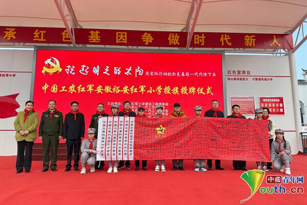 12月10日、11日,全國(guó)紅軍小學(xué)建設(shè)工程理事會(huì)一行先后前往安徽省六安市、安慶市,舉行中國(guó)工農(nóng)紅軍安徽裕安紅軍小學(xué)、岳西紅軍小學(xué)授旗授牌儀式。