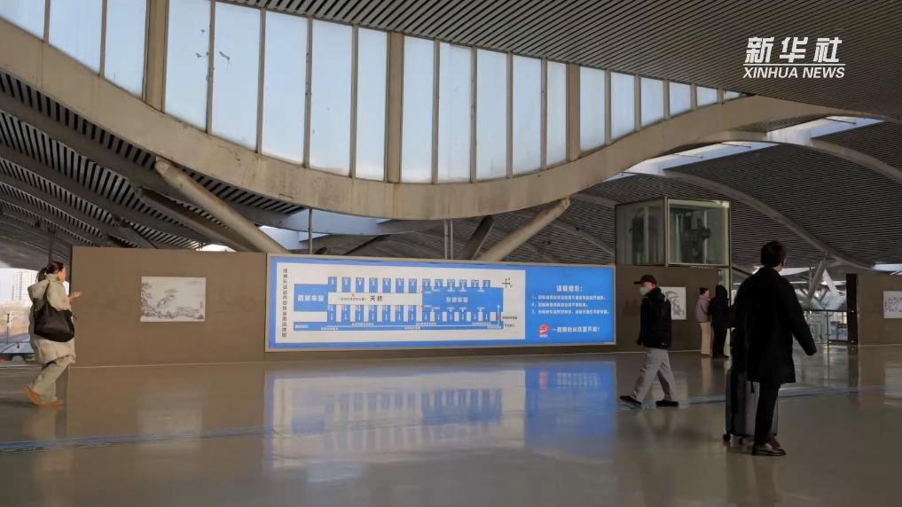 在中國鐵路上海局集團有限公司徐州站徐州東站的候車大廳里,一張張指示清晰的乘車指引地圖擺放在車站的醒目位置。